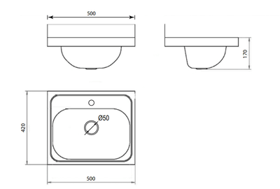 Wall Basin | 500x420x170mm S/Steel Wall Basin-Code: WB5040-1T